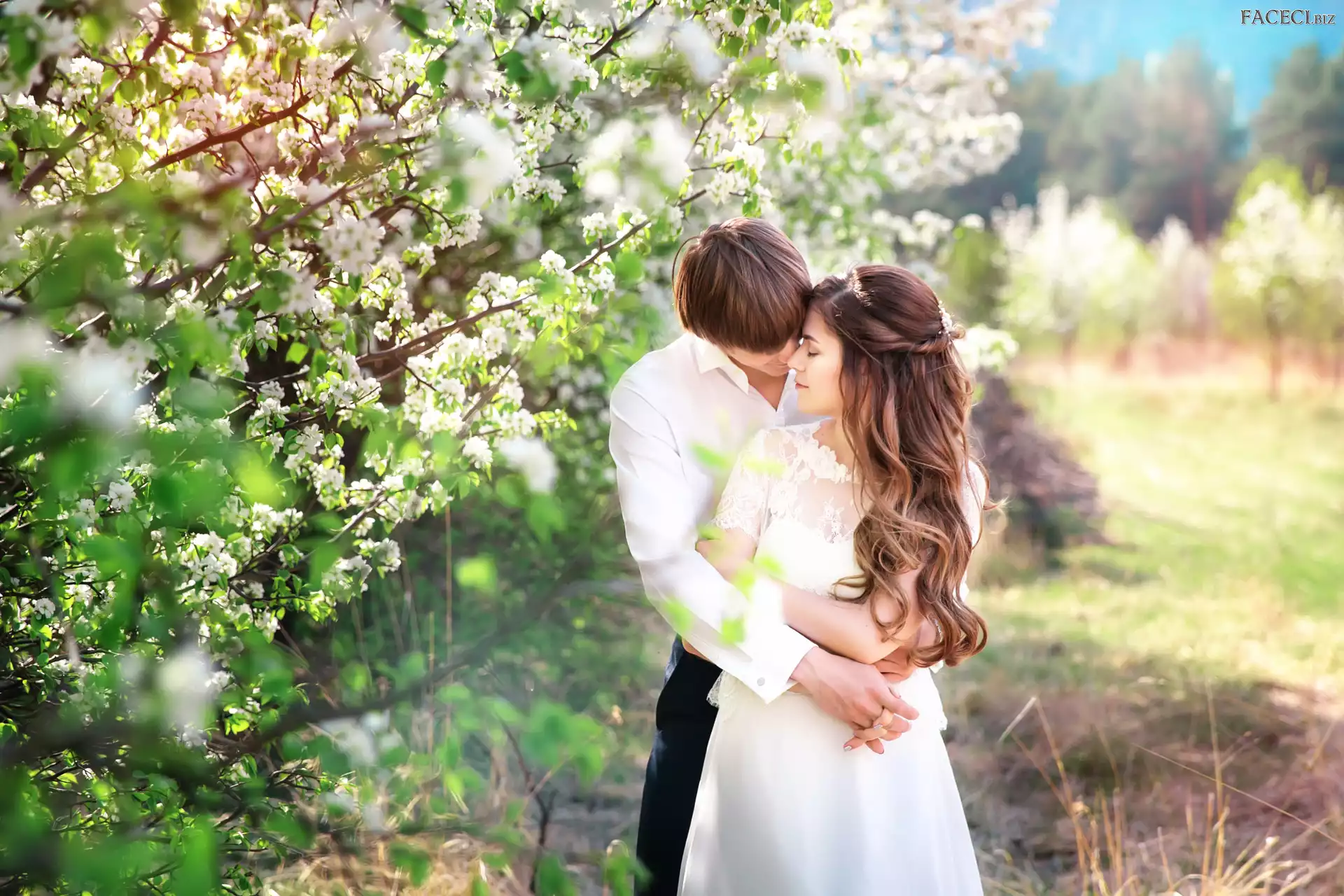 Ślub, Drzewo, Nowożeńcy, Kwitnące - faceci.biz